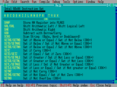 TurboPascal Helpfile: i80x86 assembler instructions |